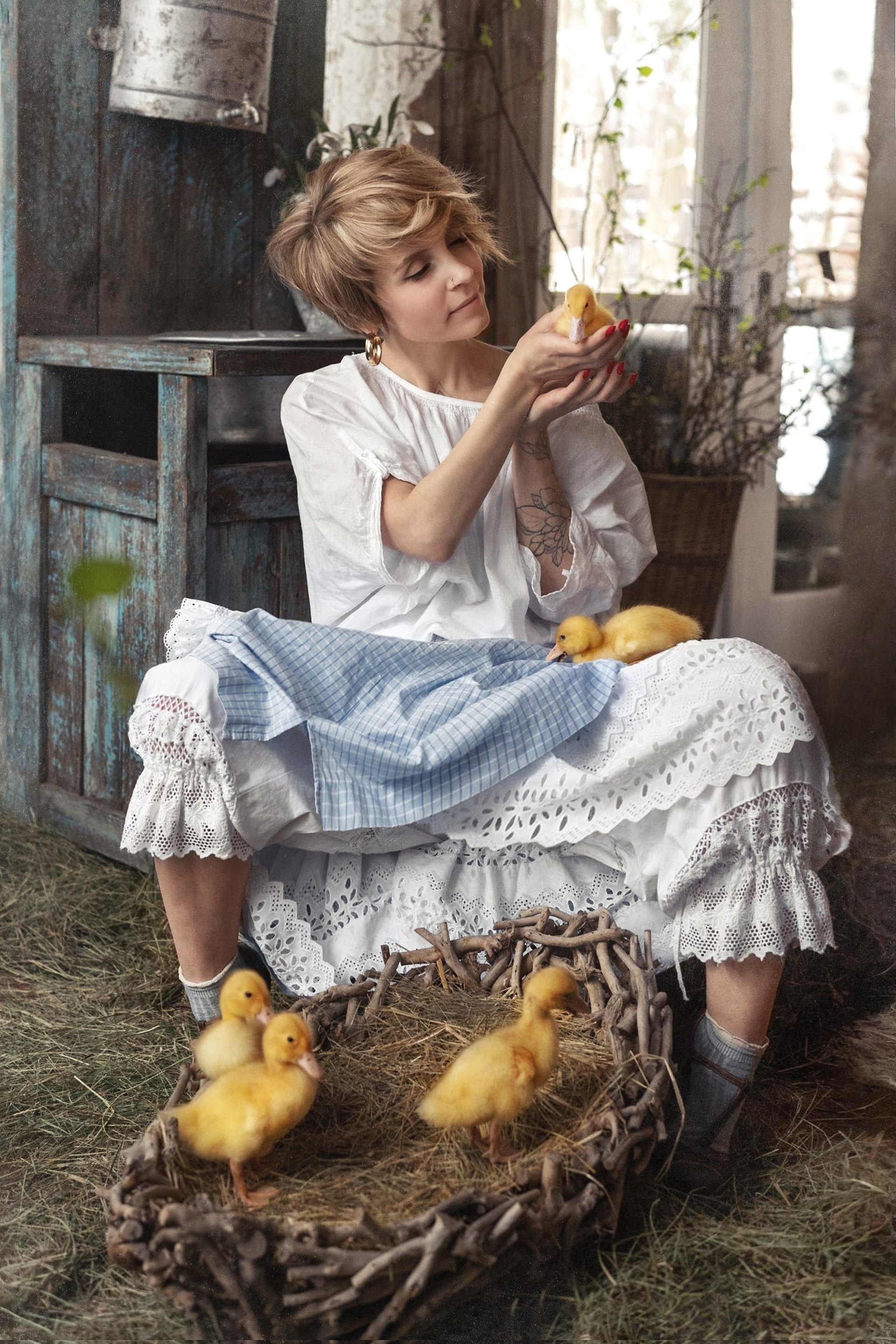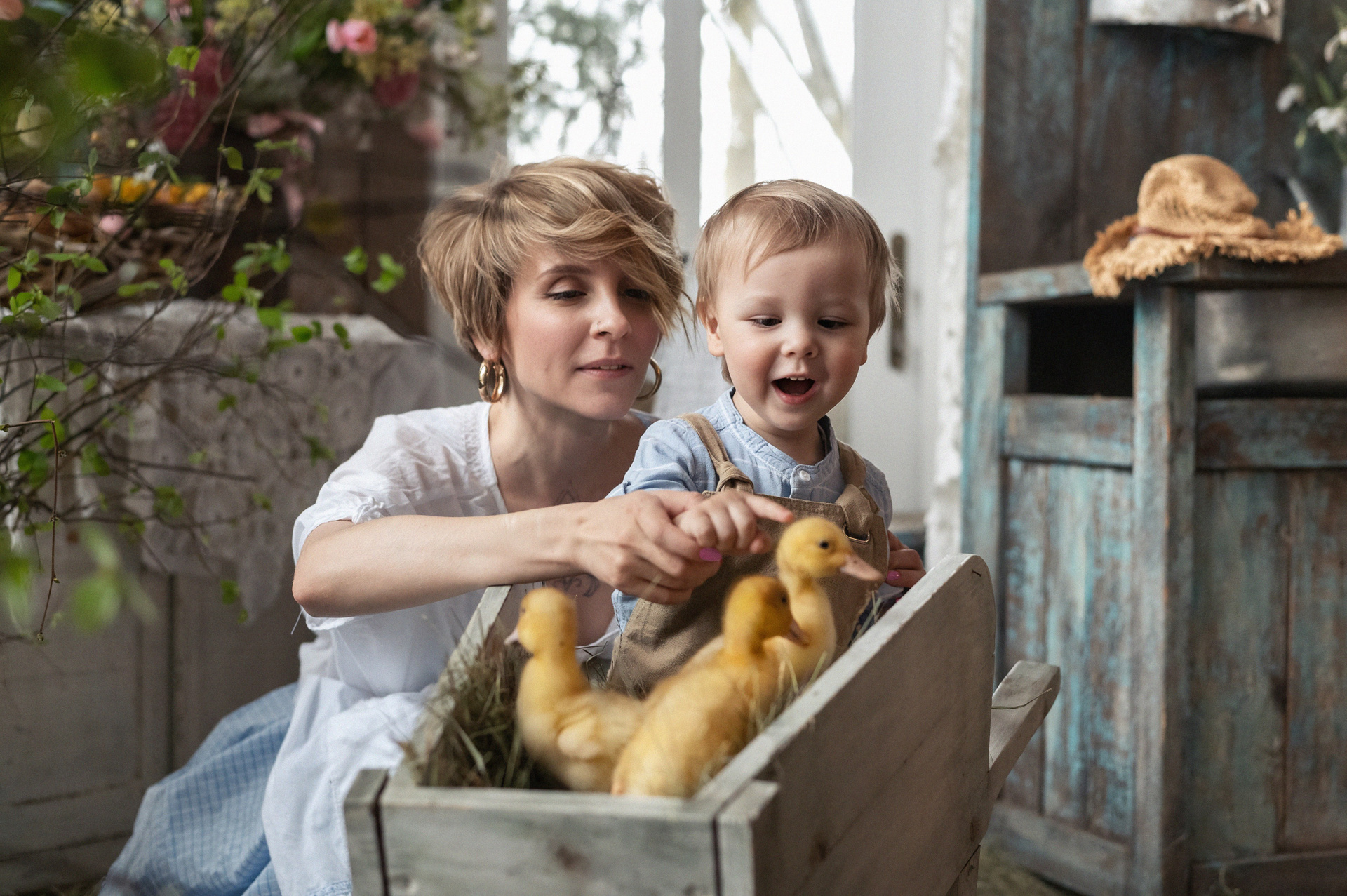 Маленькое лесное приключение! Представьте: тихий домик среди деревьев, мягкий свет и пушистые комочки счастья. Фотосессия с утятами в «Домике в лесу» — это история про нежность, детство и искренние улыбки. Все костюмы уже ждут вас в локации «Домик в лесу» — мы продумали стиль за вас, чтобы вы могли просто наслаждаться моментом. Посмотрите, какая милота у нас получилась!